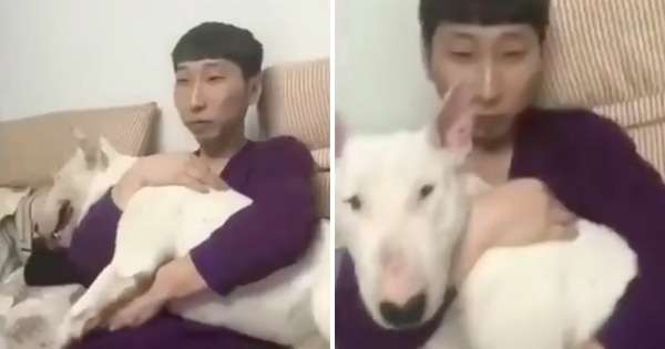 ▼這名男網友養了一隻牛頭梗。他將狗狗抱在懷中,狗狗本來背對鏡頭,轉頭露出側臉後,大家忍不住捧腹大笑。這臉型、眼睛、鼻子,跟主人太像了吧~