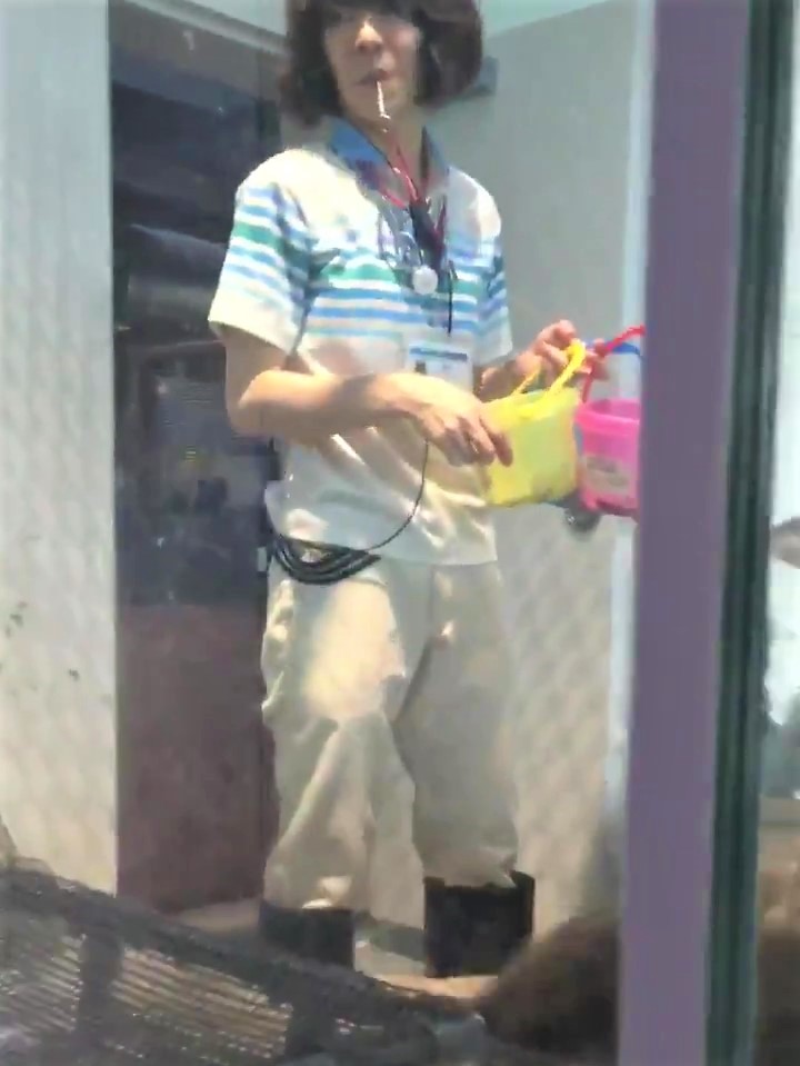 ▼飼育員大概早就習慣被動物們催促,雖然小水獺非常著急,他卻不緊不慢,還慢條斯理地看了小水獺一眼。這讓小水獺更激動了,嘴巴張得更大、一整個7pupu。