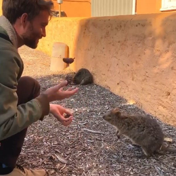 ▼Luke的超強雜耍技巧成功引起了短尾矮袋鼠們的興趣。牠們目不轉睛地看著他的表演,還有一隻短尾矮袋鼠伸出萌萌的小手,似乎想要撈走他手裡的東西。牠們專心致志看表演的模樣很可愛。