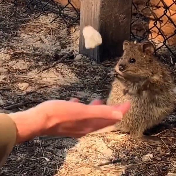 2020年10月13日短尾矮袋鼠擁有甜蜜的笑容,被稱為「世界上最快樂的動物」。日前紐西蘭的一名雜耍師搬到澳洲生活,特別去看可愛的短尾矮袋鼠。他超喜歡這種萌萌的小動物,還為牠們表演雜技。短尾矮袋鼠的反應沒有讓他失望,竟然揮動小手手,似乎在給他加油鼓勵~