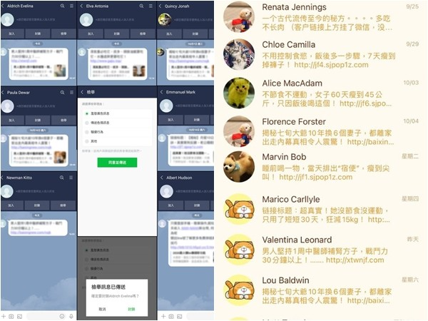 ▼有網友在臉書社團發文表示,「最近LINE廣告是不是很多啊?你們也有嗎?還是只有我收到?幾乎每天都有陌生帳號傳廣告訊息,LINE的檢舉功能到底有沒有用啊?」引起網友共鳴「每天都好幾封」、「我也是,封鎖都封鎖不完」很顯然的大家都有這種連續收到惱人訊息的經驗。