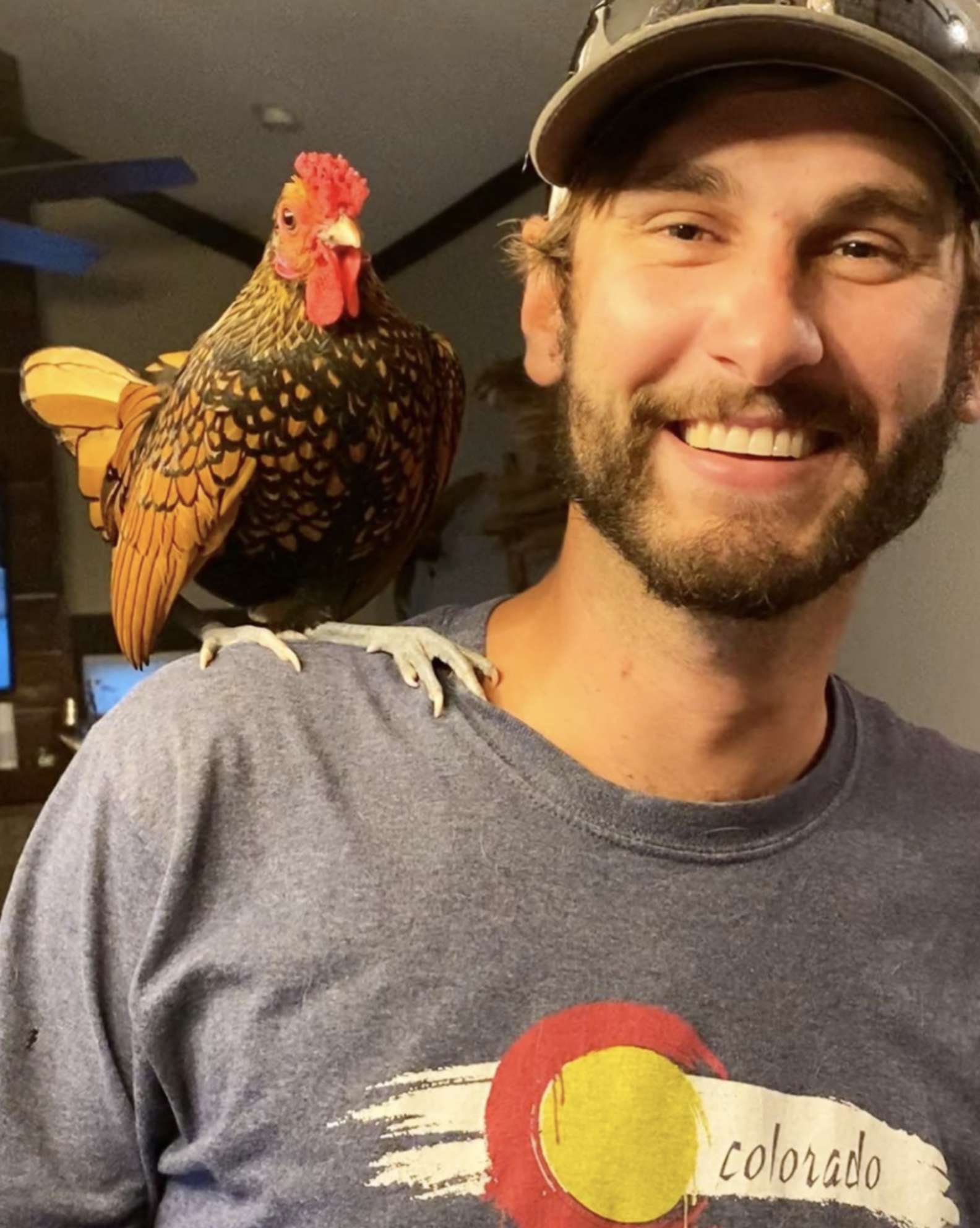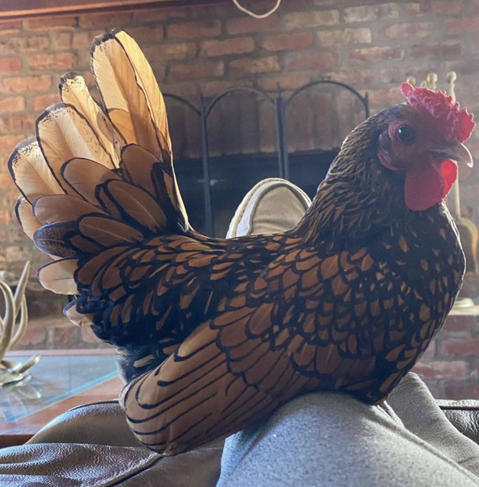 ▼剛開始這隻雞很謹慎,不願意靠近人類,直到有一天Chaz開門讓狗狗進出,沒想到大公雞竟跟著狗狗進入客廳,而且決定住下來。Chaz一家本來沒準備養雞,但他們很喜歡這隻強勢的大公雞,於是收編牠,並給牠取名為Ronnie。