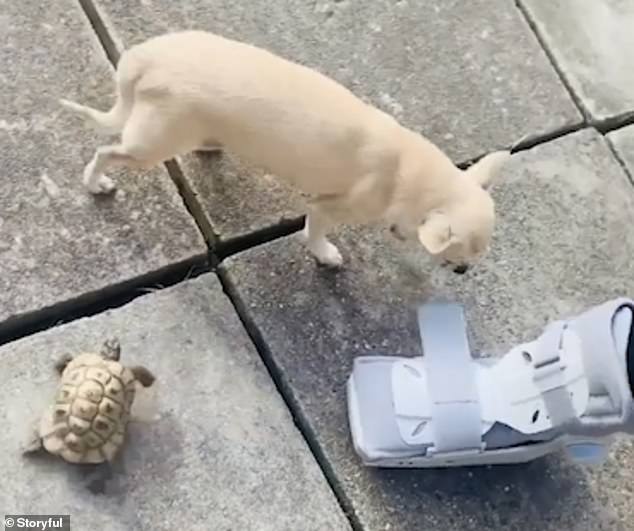 龜龜太想做朋友!加速衝刺「接近吉娃娃」 狗狗被嚇到後退:牠怎那麼快?