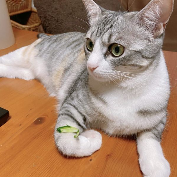 ▼網友看到這一幕全笑翻了,紛紛留言「完全沒有要認錯的樣子」、「一臉故作鎮定」、「偷吃沒擦嘴」、「貓:你怎麼知道的?!」。還有網友注意到,這隻喜歡吃菜的貓咪很特別呢,因為喜歡吃菜的貓咪真的很少。除了生菜,黃瓜也是牠超愛的,之前牠偷吃黃瓜的時候也被抓包過,有前科在身哦!