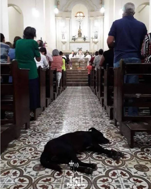 ▼Gomes在臉書上說:「狗狗們永遠都會被允許進入教堂,牠們可以在這裡吃飯、睡覺、喝水。這座教堂是上帝的,牠們也是上帝的。」