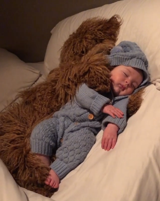 純天然泰迪! 萌寶寶每天被「3隻巨型貴賓輪流哄睡」超幸福:根本人生勝利組!