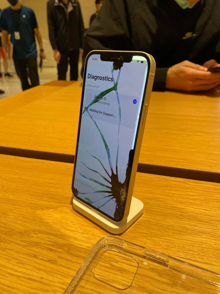 2020年10月26日蘋果iPhone 12系列新機於10月23日開賣,雖然價格不便宜,但還是有不少果粉排隊搶購。iPhone12號稱「比任何智慧型手機的玻璃更堅固」,一名包膜業者拿到新機後立刻著手測試,結果新機到手短短2小時,螢幕就裂成「蜘蛛網」!