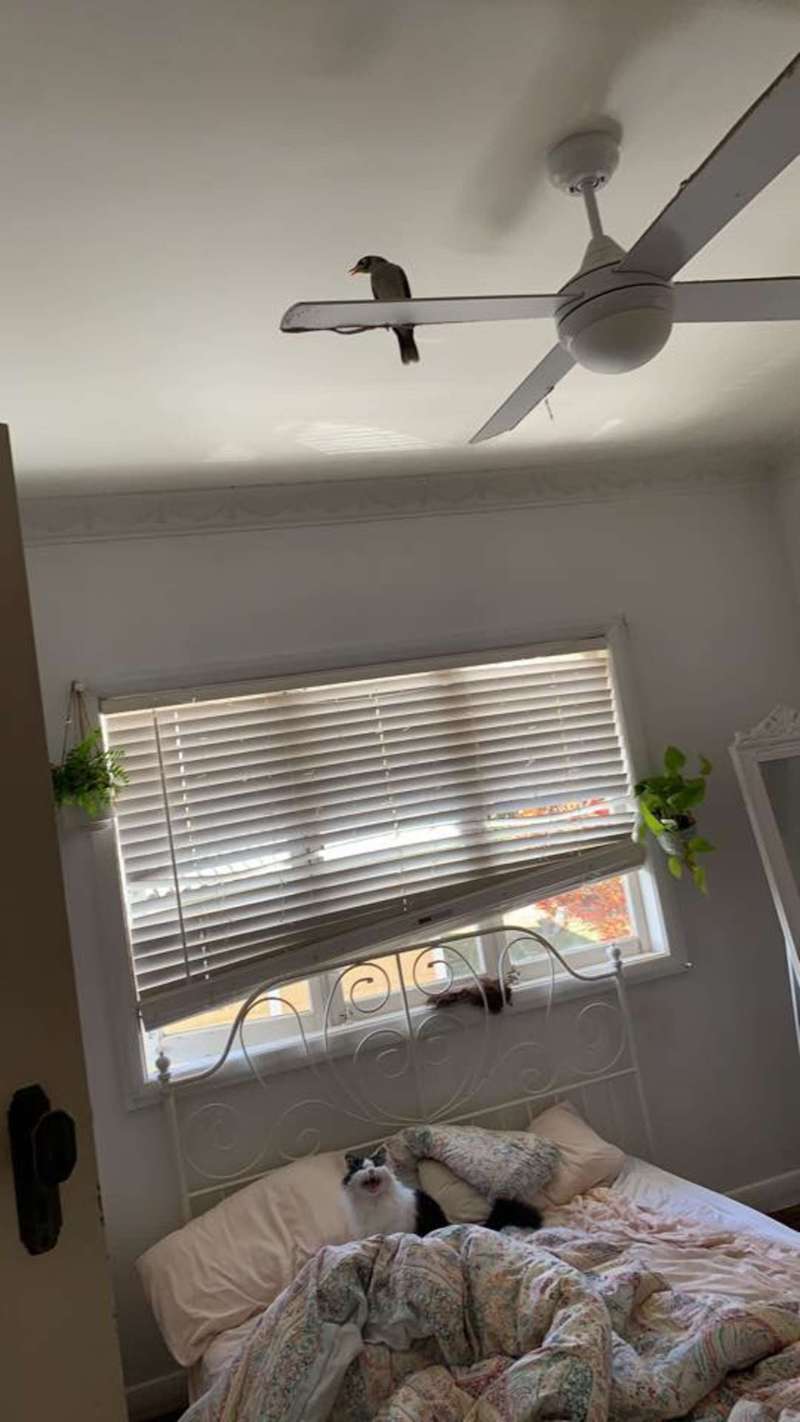 ▼Lisa連忙去查看Panda的情況,這才發現有一隻小鳥從開著的窗戶飛進來,正驚慌失措地在屋裡亂飛。Panda發現小鳥未經自己的允許就闖進自己的家,整隻貓都氣瘋了!