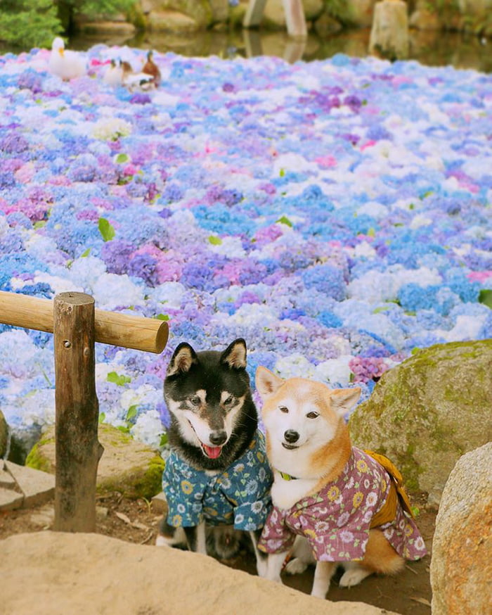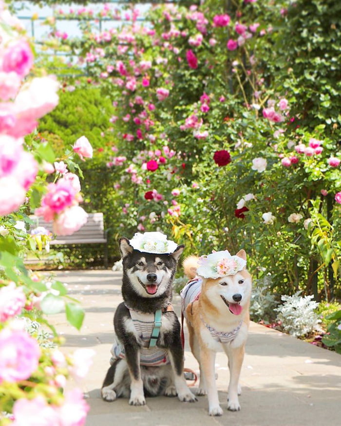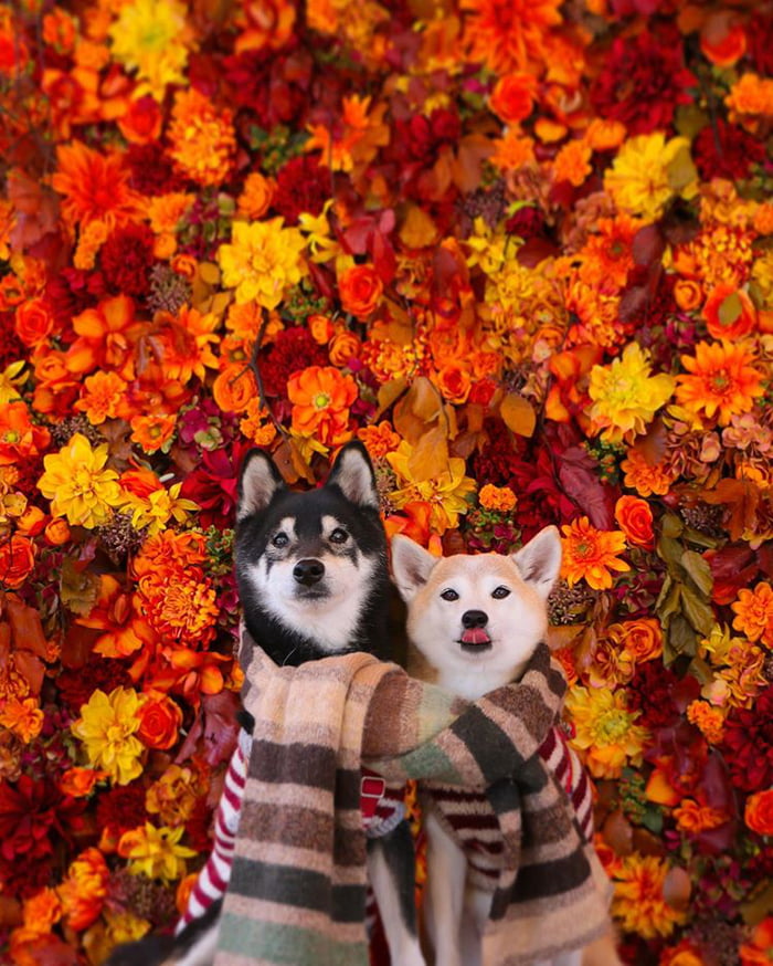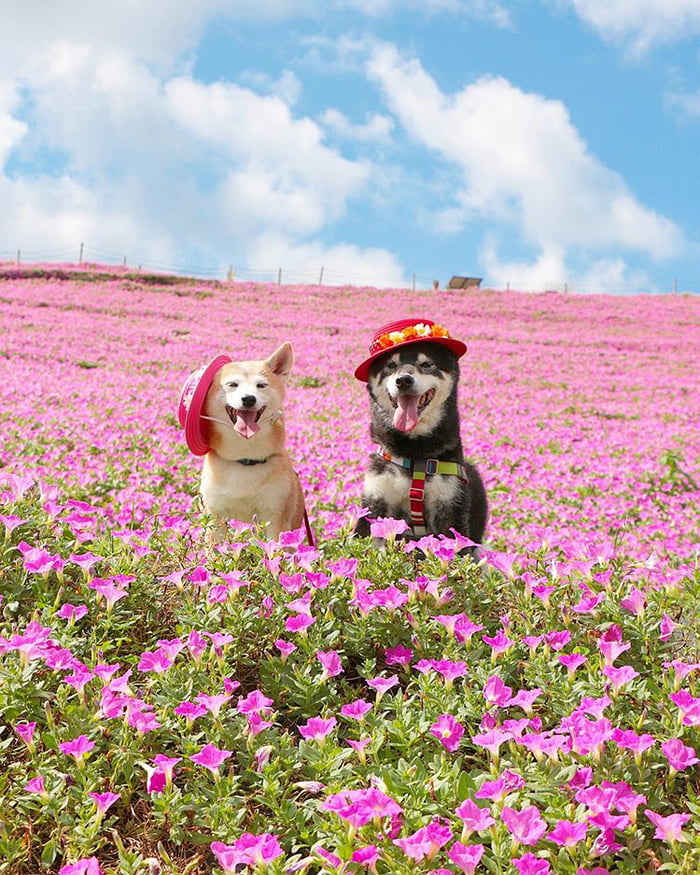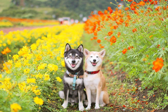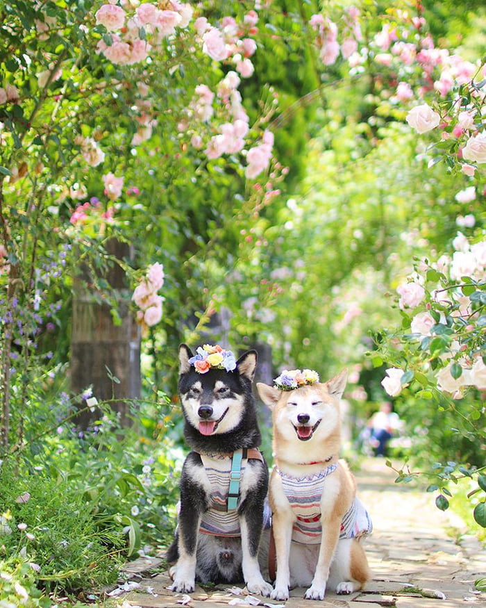 ▼主人Nerishiro經常帶兩隻柴柴外出旅行,為牠們拍攝旅行照片,紀錄柴柴兄妹的美好生活。Kenshiro和Yuria幸福依偎在花叢中,露出甜美笑容的模樣非常萌。