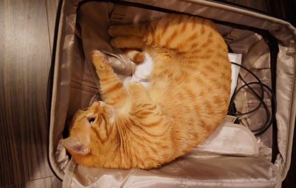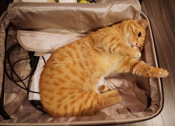 出去玩不揪!短腿萌橘「自己打包」進行李箱 委屈眼神盯:帶人家走啦~