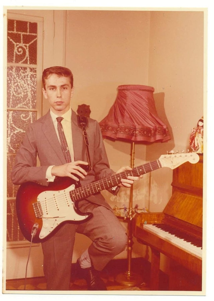 ▼1956年,爺爺16歲時與他的吉他一起拍照。