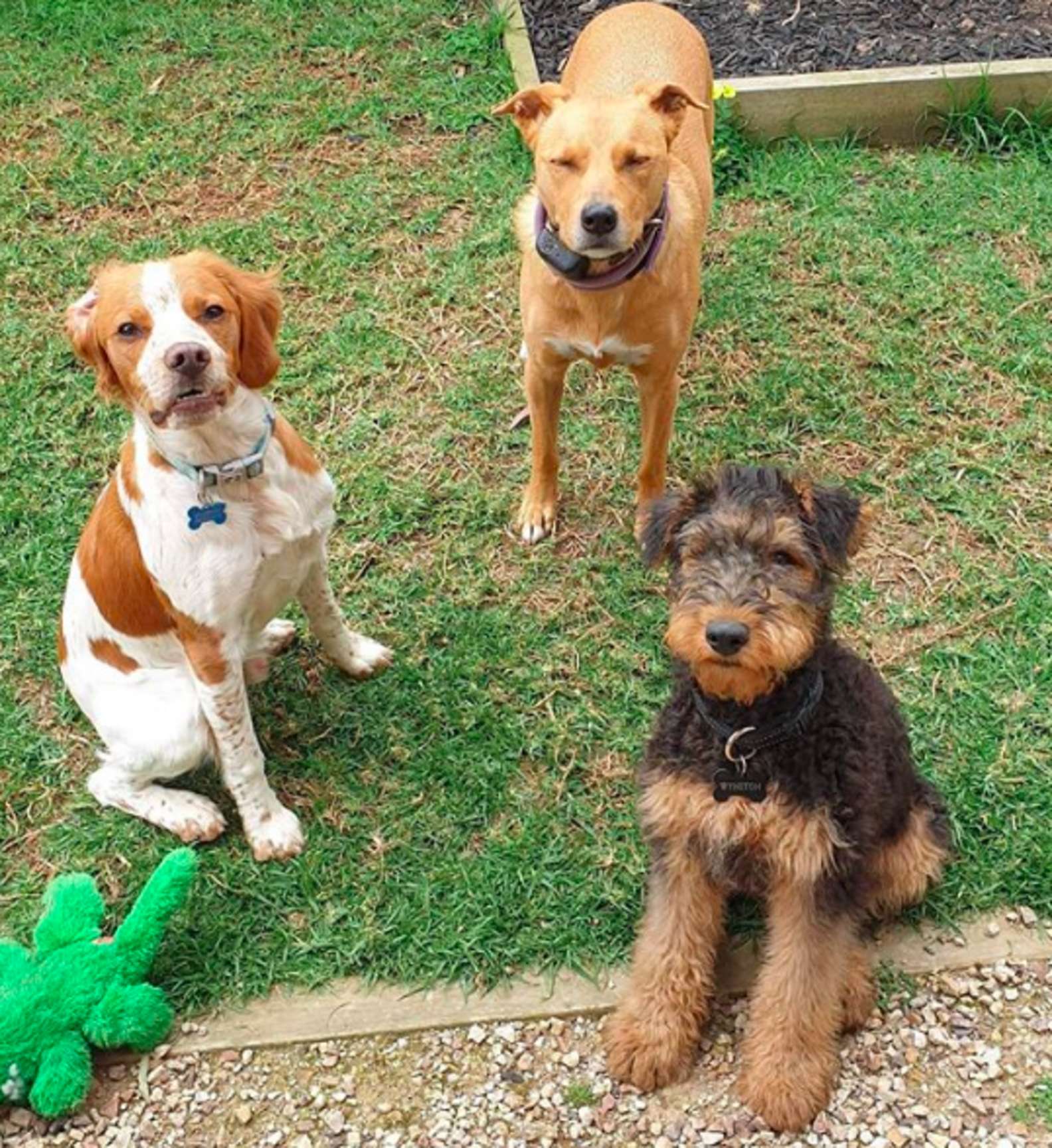 ▼最近Erin的鄰居養了一隻叫Wynston的狗狗,3隻狗狗很快成為了好朋友。為了方便狗狗朋友們見面,Erin乾脆將圍欄上的小洞變成了小門,這樣牠們就能一起玩耍了。
