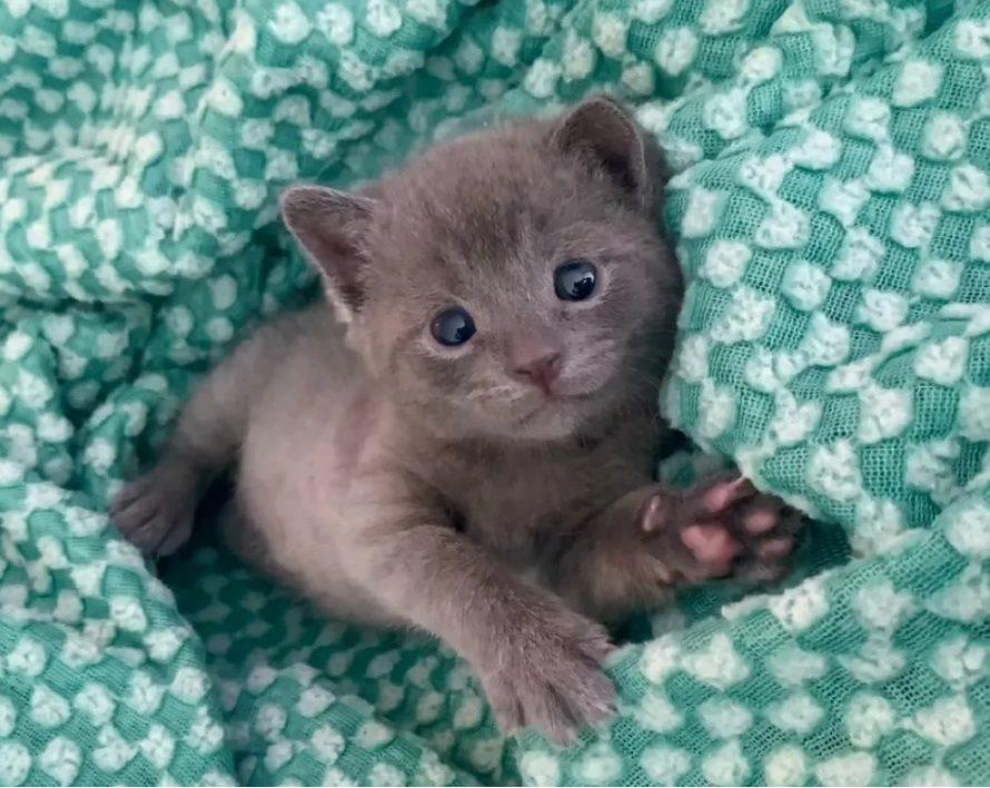 ▼一天傑茜和往常一樣到收容所去領養流浪小貓,她原本已經選定了要領養的3隻貓咪,但是當她看到這只明顯比其他貓咪瘦弱很多的小灰貓寶寶弗蘭克(Frankie)時,牠眼中充滿了想要一個家的渴望,像是在說「不要丟下我,拜託~」,傑茜瞬間被融化了,於是將另外3隻貓咪和牠都一併帶回家。