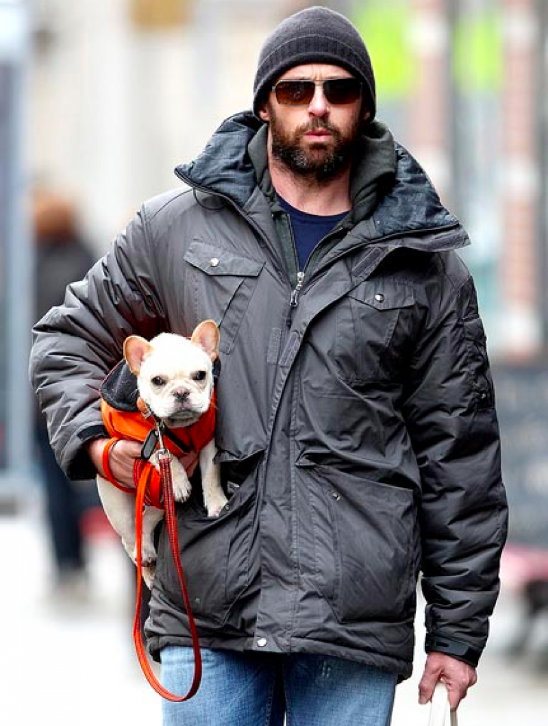 型男果然都要有一隻狗狗!休傑克曼愛狗可不是作秀,他每次出門遛狗都會帶撿狗大便的袋子,盡飼主的責任。這樣的完美男神誰能不愛?
