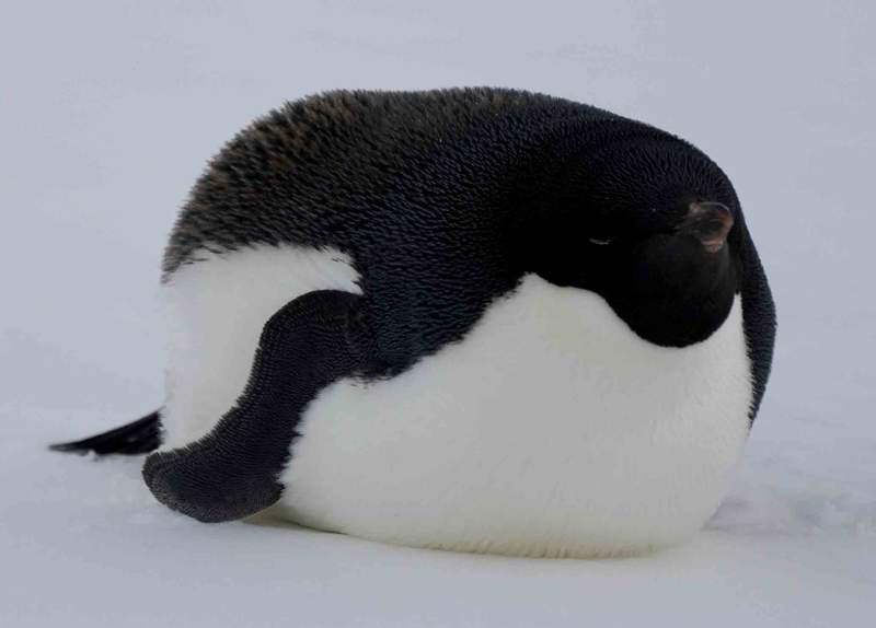 まるまったアデリー!3日夜、昭和基地の前で1羽寝てます。斜め横から望遠で撮ったらこんな寝姿。ペンギンです(^^) #南極 pic.twitter.com/Wl0Iej1ec8