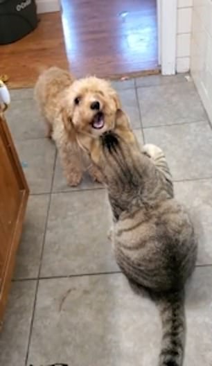 2020年11月07日毛孩之間的互動太可愛啦~國外一位網友養了3隻毛孩,分別是7歲的貓咪Marvin、4個月大的小狗Louie,還有1歲的大狗狗Leela。平時Marvin在家中作威作福,尤其喜歡欺負Louie。但Louie不會忍氣吞聲,牠知道該找誰幫忙!