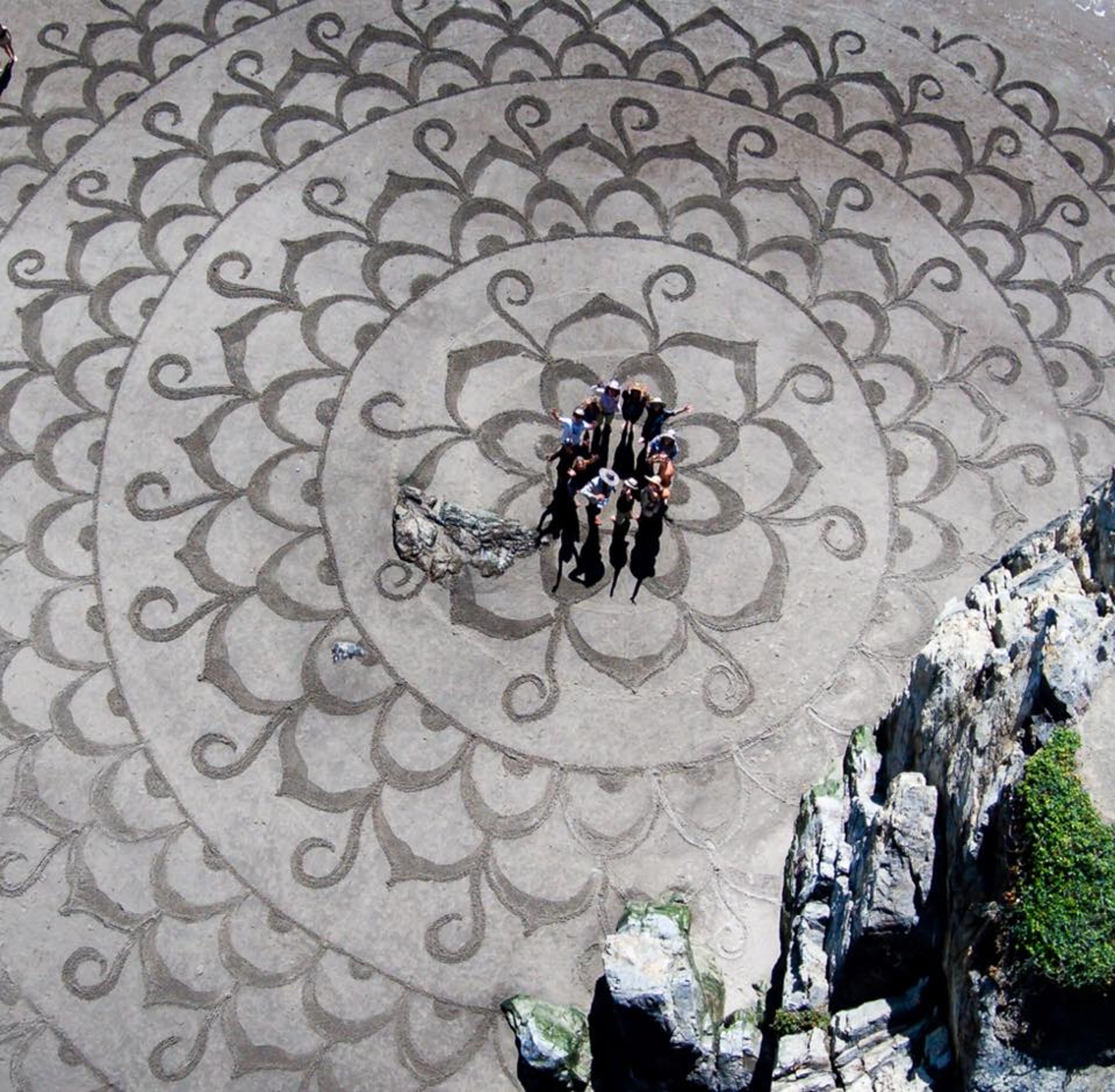 ▼Andres Amador以前做過雕塑工作,對幾何有獨特的心得。研究創建形狀的方式時,他偶然發現了古人設計巨型廟宇和建築物的方法。他對此很感興趣,跟朋友去海邊玩時,就在沙灘上跟朋友分享自己新學到的東西。那時候他突然意識到,可以將沙灘當成巨大的畫布來創作。