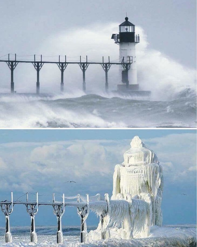 ▼美國密西根州的燈塔,結冰後超級美。