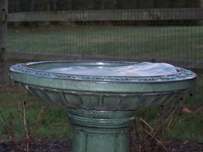 ▼盆裡的水剛剛泛起波瀾就被凍住了。