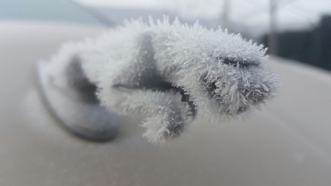 ▼「我又冷又無聊,等車時無意中看到了這些冰花。」