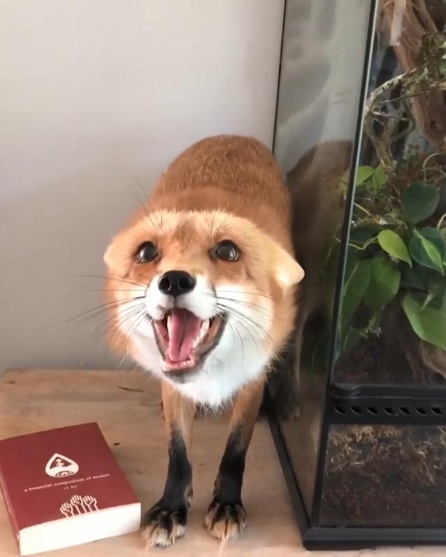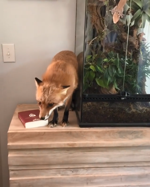 2020年11月11日外國一隻名叫Juniper的網紅狐狸,在IG上有兩百六十多萬人的追蹤,原因無他,就是因為牠太萌啦!某天,Juniper趁主人不注意偷偷爬上櫃子。沒想到爬上去之後卻不敢下來,只好咿咿咿叫個不停,趕緊討救兵。主人趕來看到這個狀況,連忙要把牠從櫃子上救下來。沒想到看到救兵,Juniper不但沒有高興,還不悅地開起了「飛機耳」,同時不斷尖叫,讓人看了好氣又好笑。