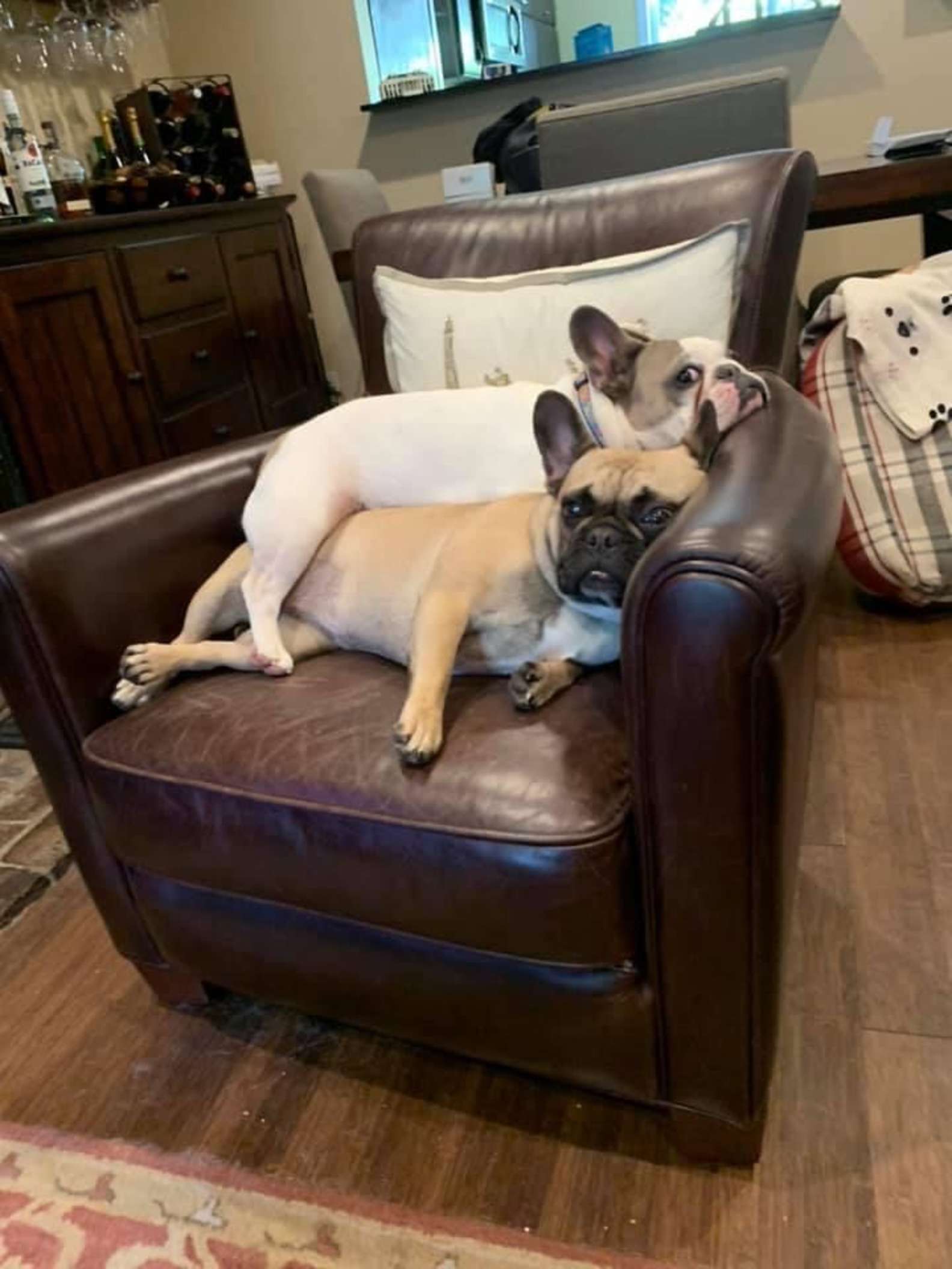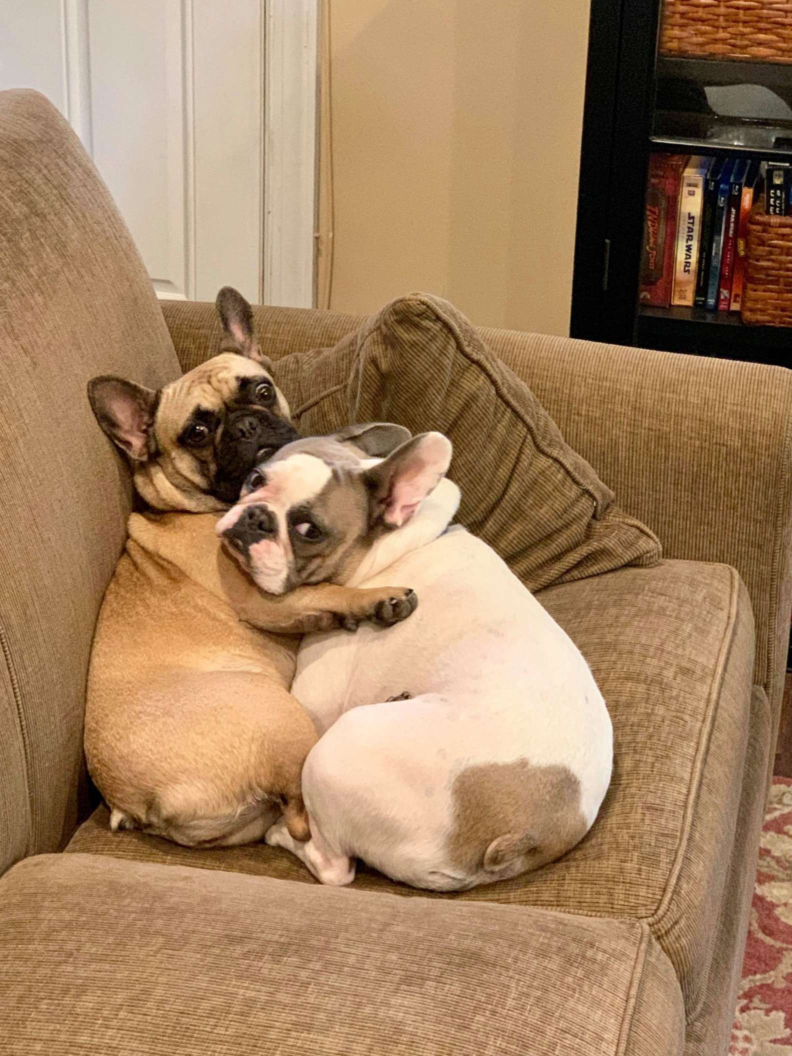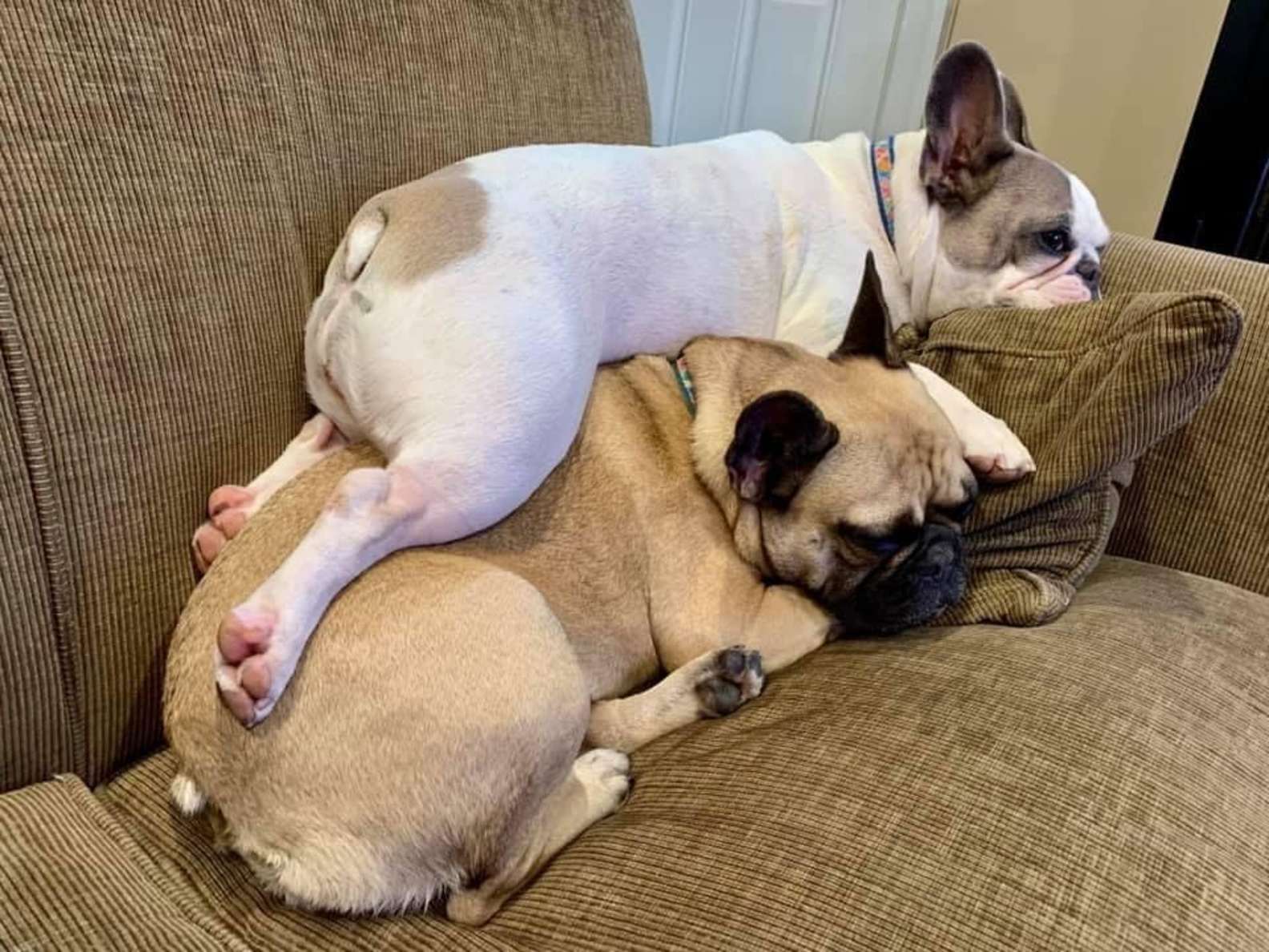 很多飼主擔心家中的毛孩孤單,會再領養一隻毛孩給牠作伴。國外網友Jennifer Lewis養了2隻法鬥,分別是姐姐Frannie和妹妹Trixie。這兩隻狗狗感情很好,就連睡覺的時候都窩在一起,看起來超可愛~