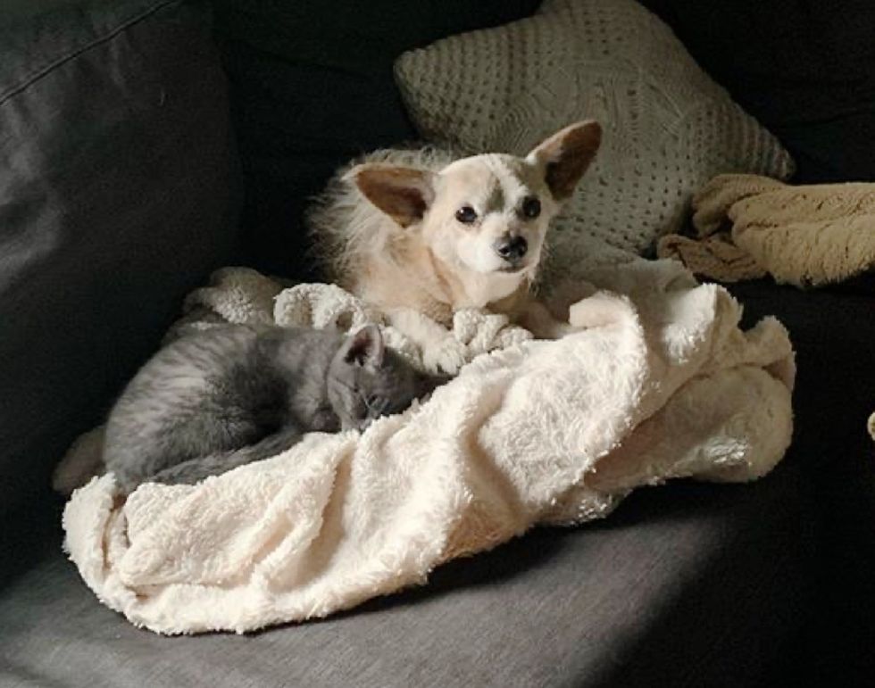 ▼但是這個小傢伙並沒有放掉和哥哥姐姐們親近的機會,總是黏著牠們,隨時隨地給牠們愛的抱抱,很快哥哥和姐姐也融化在了牠的溫柔下。
