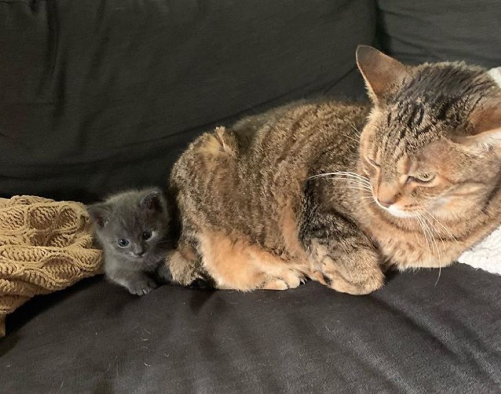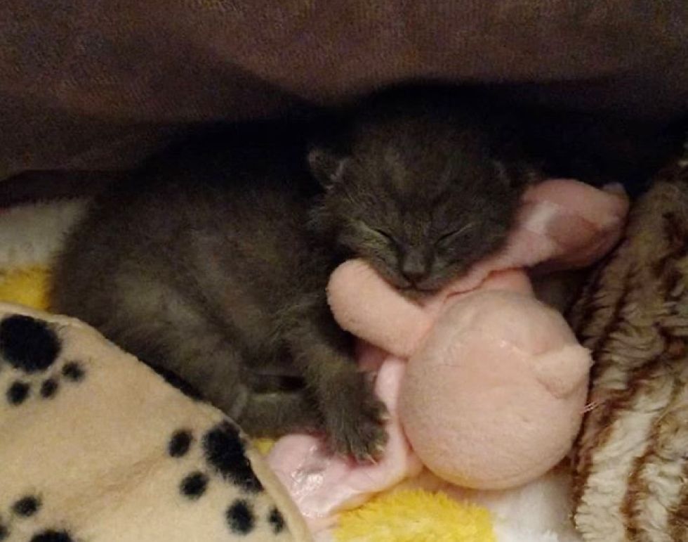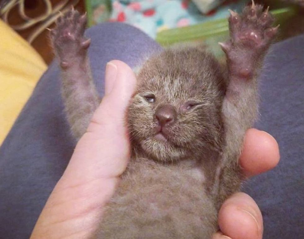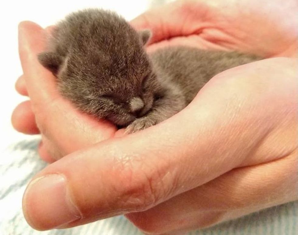 第一眼看到貓寶寶的時候,Megan就忍不住感嘆「牠是我目前見到的貓咪裡面最小的一隻了!我感覺牠應該是早產兒,牠看起來就像是一隻非常迷你的小灰鼠,所以我就給牠取名『Mouse』(小老鼠)」。