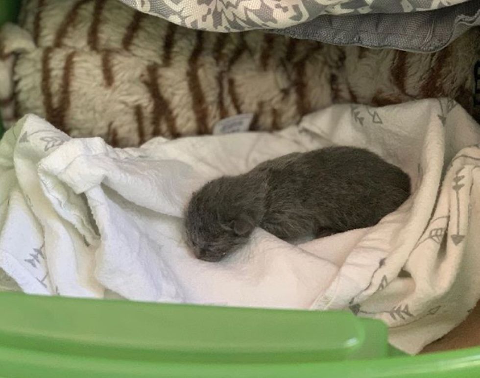 2020年11月14日住在美國西雅圖的女生Molly一天去沃爾瑪超市採購時,在停車場附近聽到有貓咪的叫聲,結果在旁邊的灌木叢中發現了一隻剛出生的貓寶寶。這隻貓咪看起來只有2天大,在牠身旁的貓媽媽因為交通事故已經永遠地離開了牠。