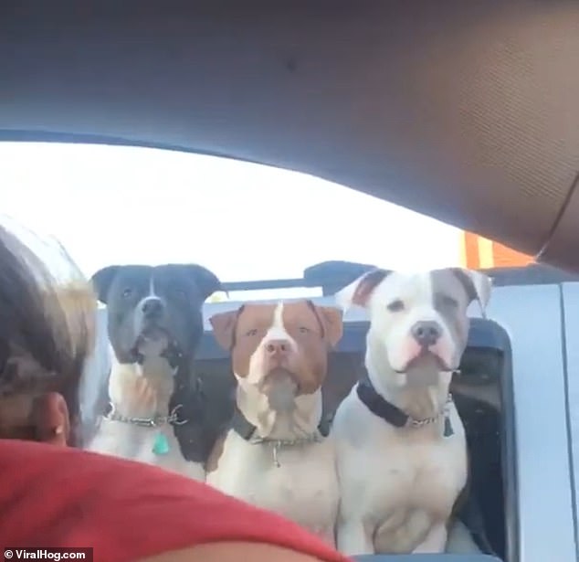 2020年11月13日狗狗喜歡搭車兜風~日前美國維吉尼亞州里奇蒙(Richmond)的一名網友開車上路,在一個路口等紅燈時,發現隔壁車輛中有好幾位特別的乘客。她仔細一看,原來那是3隻狗狗。汪星人一隻又一隻將頭探出車窗吹風。她覺得這一幕超級萌,忍不住叫出聲來。