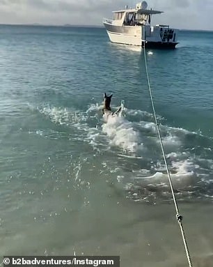 ▼Jack將愛犬趕走鯊魚的影片po到網路上,很快就引發網友們的關注: