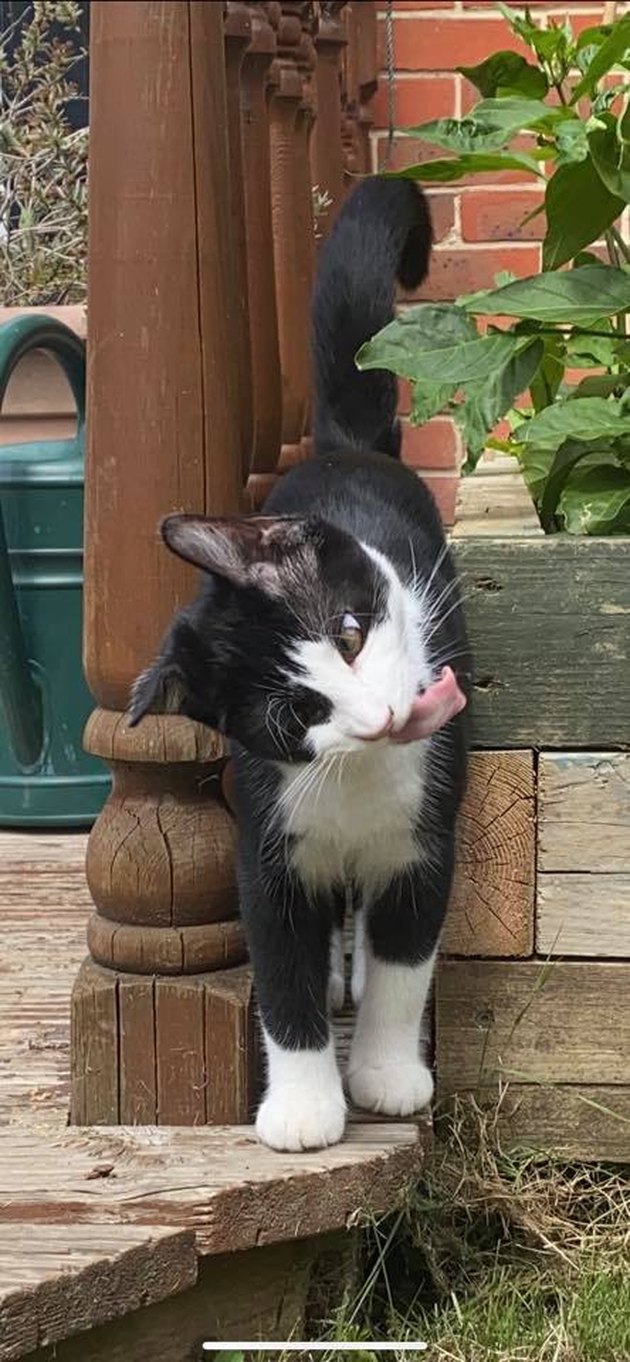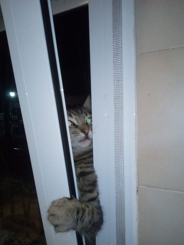 ▼「這是我鄰居家的貓咪,我鑄下了一個大錯,就是透過窗戶縫隙餵給牠一點熱狗吃,現在牠覺得來這裡就能討到東西吃!」