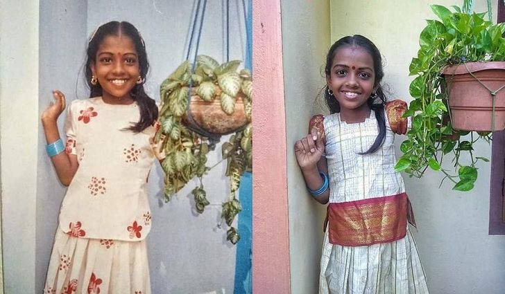 ▼媽媽和女兒同樣的年齡拍攝的照片。