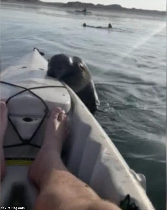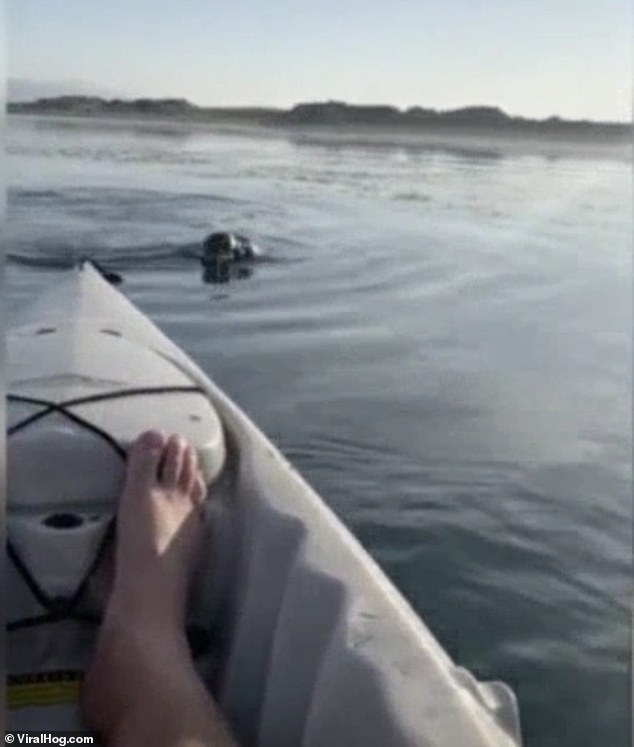 ▼那位遊客表示,當時他正在划船,附近水域有一群可愛的海獺。其中一隻海獺大概想要休息一下,或單純愛玩,就開始往獨木舟上跳。牠試了好幾次都沒有跳上去,看起來很滑稽。