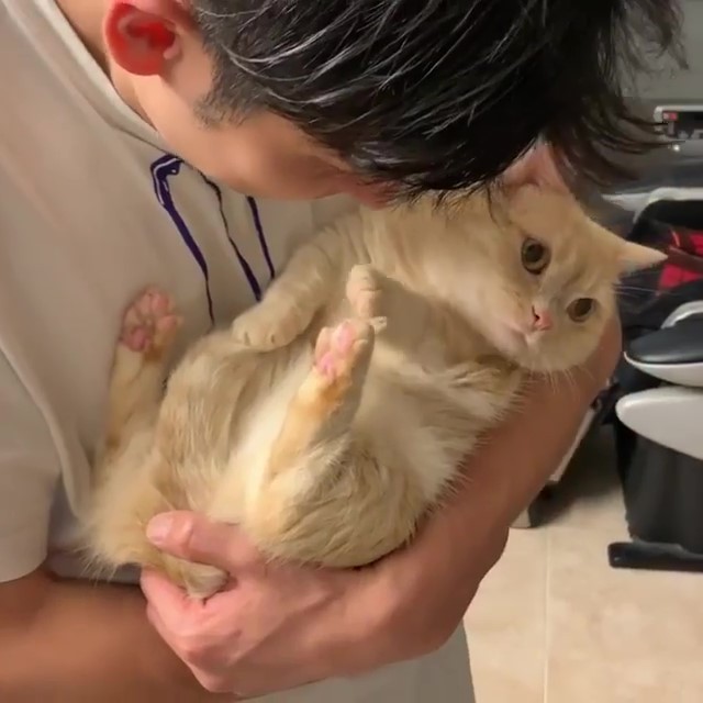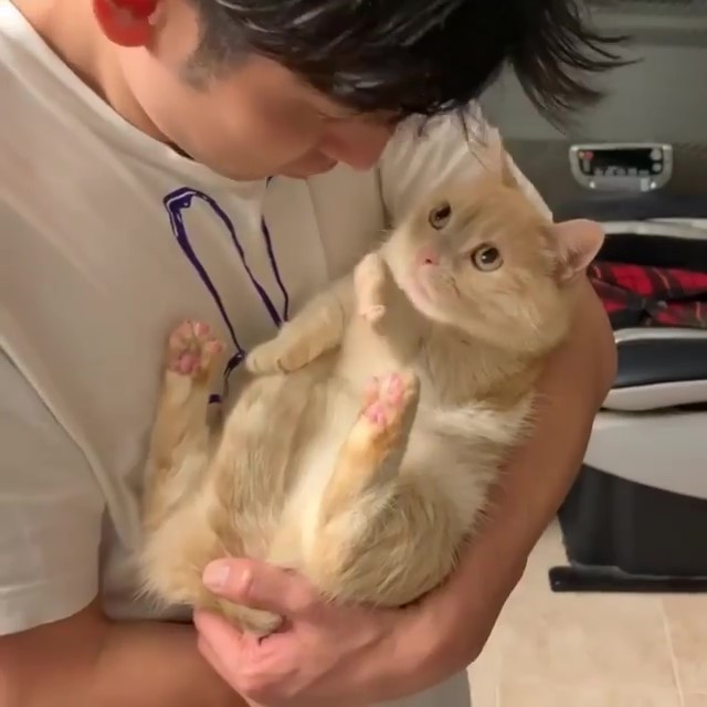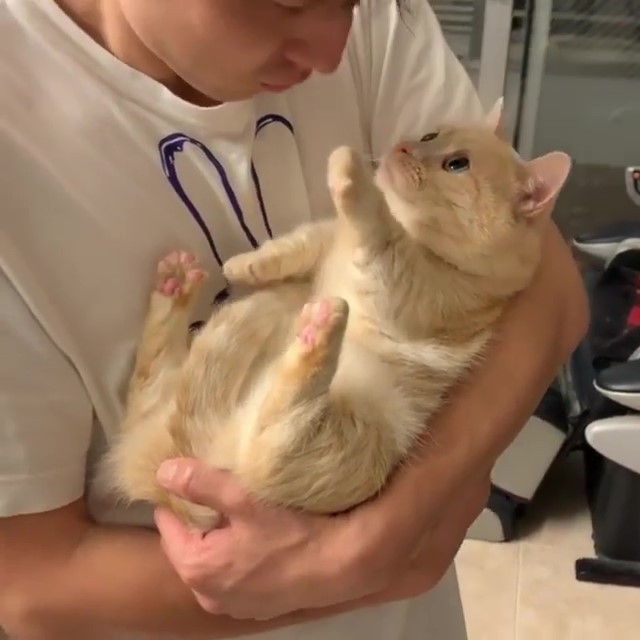 「親一個嘛~」把拔抱貓討啾 曼赤肯「紳士手」拒絕:現在不行,謝謝