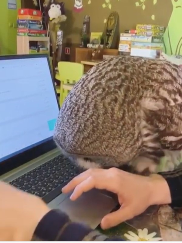 ▼影片中的這隻貓頭鷹叫「米拉」。這段期間俄羅斯部分地區實施居家隔離,主人在家中工作,米拉也只能待在家中,感到非常無聊。那次主人用筆電工作時,米拉悄悄走過來開始撒嬌。