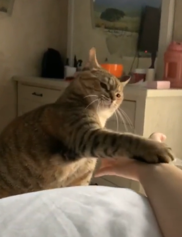 網友們看到影片紛紛笑說:「貓貓說:喔喔喔喔喔喔喔喔!煩欸!給你啦!可惡」、「飼主的手還好嗎?有沒有瘀青」、「從來沒看過這麼有力的擊掌!恨意滿滿啊」、「不對!牠是在很認真地幫主人加油」。貓咪將手手拍到主人手臂上時,能聽到清脆的「啪」聲。牠明明不想擊掌,還願意配合飼主,真是一隻懂得體諒人的好貓貓!