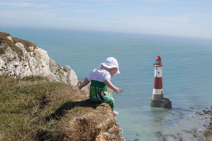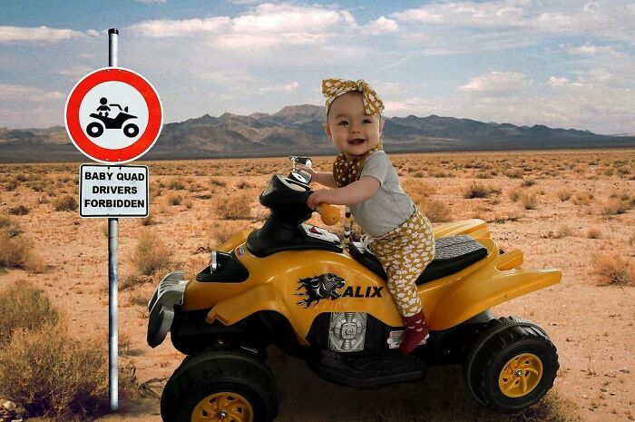 ▼Kenny說:「我們有了女兒後,我女友不得不回去上班。她一直讓我給她傳女兒的照片,以便她知道女兒是否安全。我決定幽默一點,於是製作了這一系列女兒處於險境狀況中的照片。」