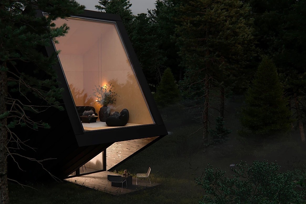 森林裡的幾何別墅!簡約黑房屋「故意蓋很歪」 走進才懂「與自然融為一體」的美好