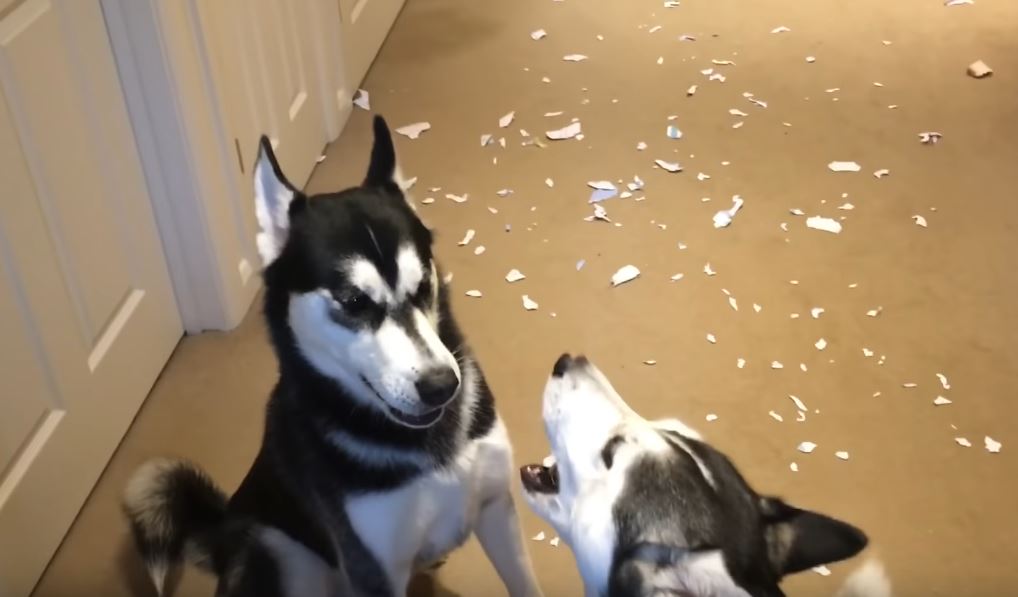 主人你要信我!回來質問「是誰拆家」 2隻哈士奇吵翻:是牠是牠啦!