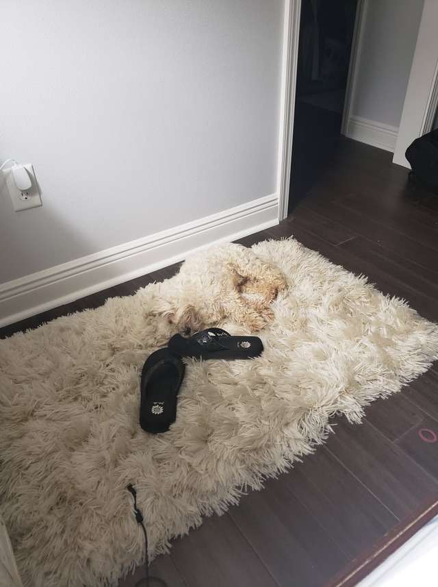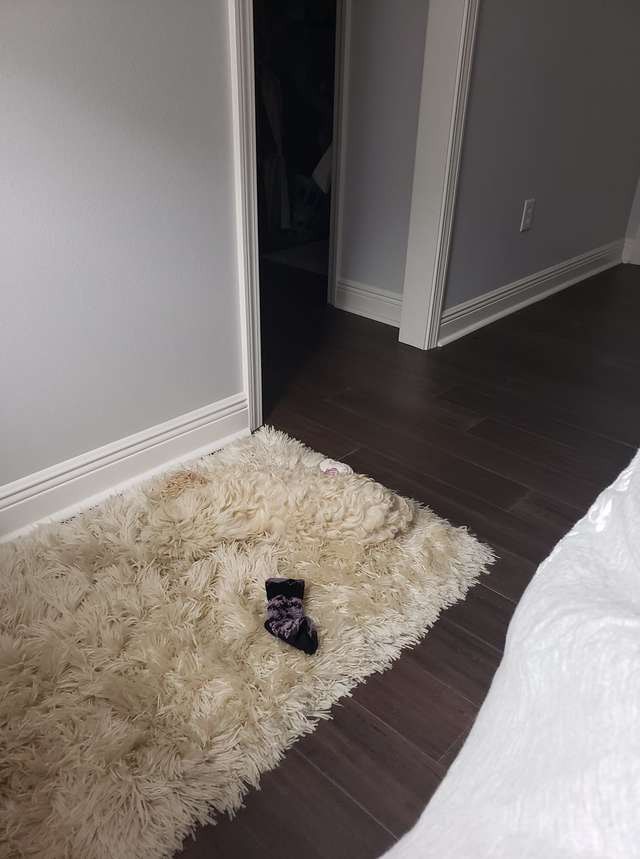 Hoss每天都在考驗主人的眼力。這地毯跟牠幾乎一模一樣,主人每次路過地毯都要小心翼翼才行呢。