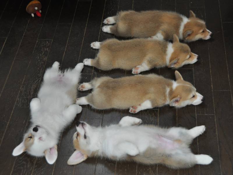 6隻小柯基躺平酣睡! 地板停滿「Q萌小灰機」睡姿笑翻網友:根本是停基坪~