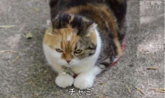 ▼Chami已經九歲了,是一隻三色貓,在1歲做結紮之後,開始像吹氣球般的變胖,主人為了牠的健康,開始帶牠去爬家裡附近的「吾妻山公園」健走。