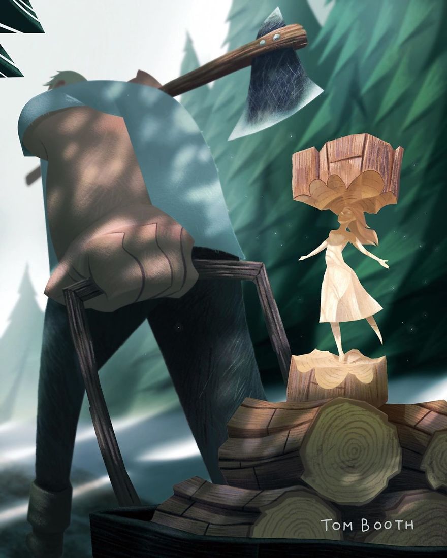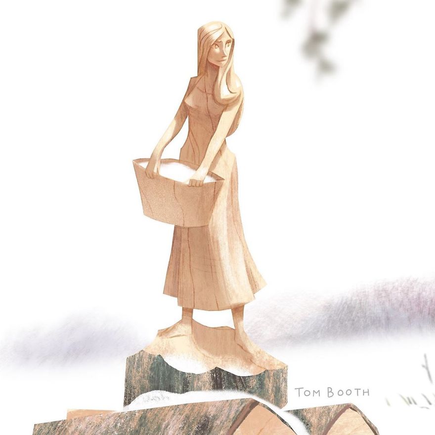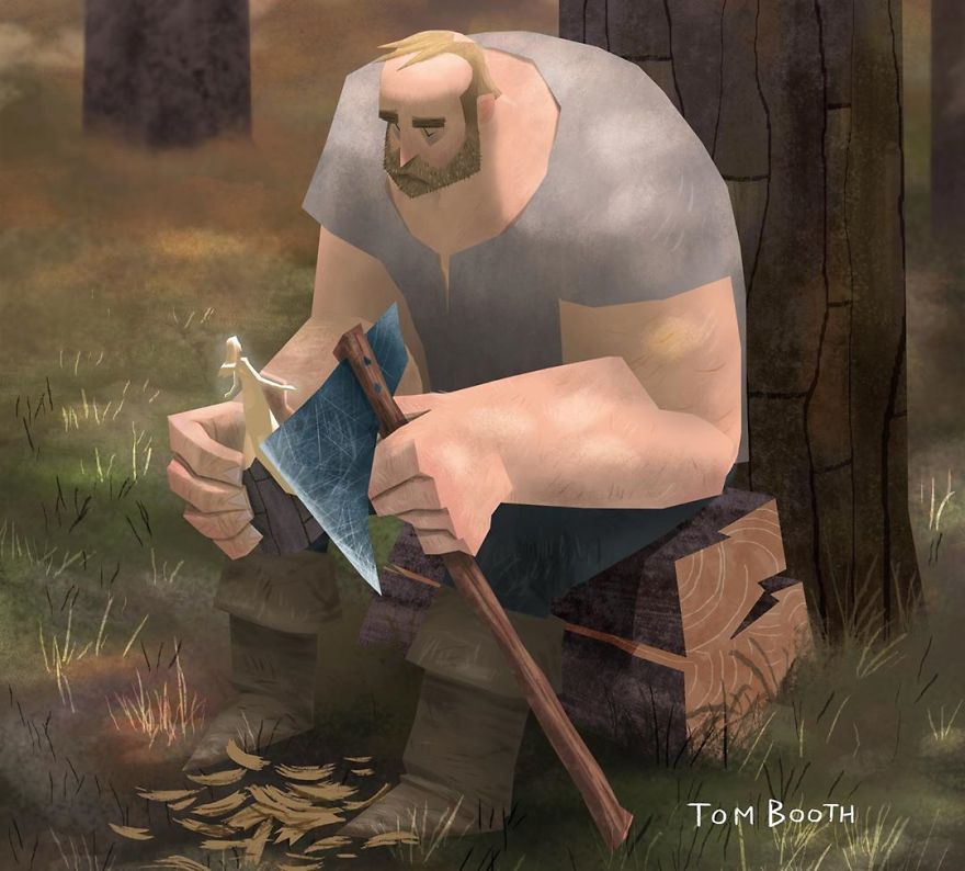 Tom Booth的作品色調柔和,但內容卻讓人耳目一新。我們不知道木匠和女孩之間到底有怎樣浪漫的故事,卻能從一張張插畫中感受到他們之間的深情。大家對Tom Booth的作品感興趣的話,可以去他的Instagram看看~