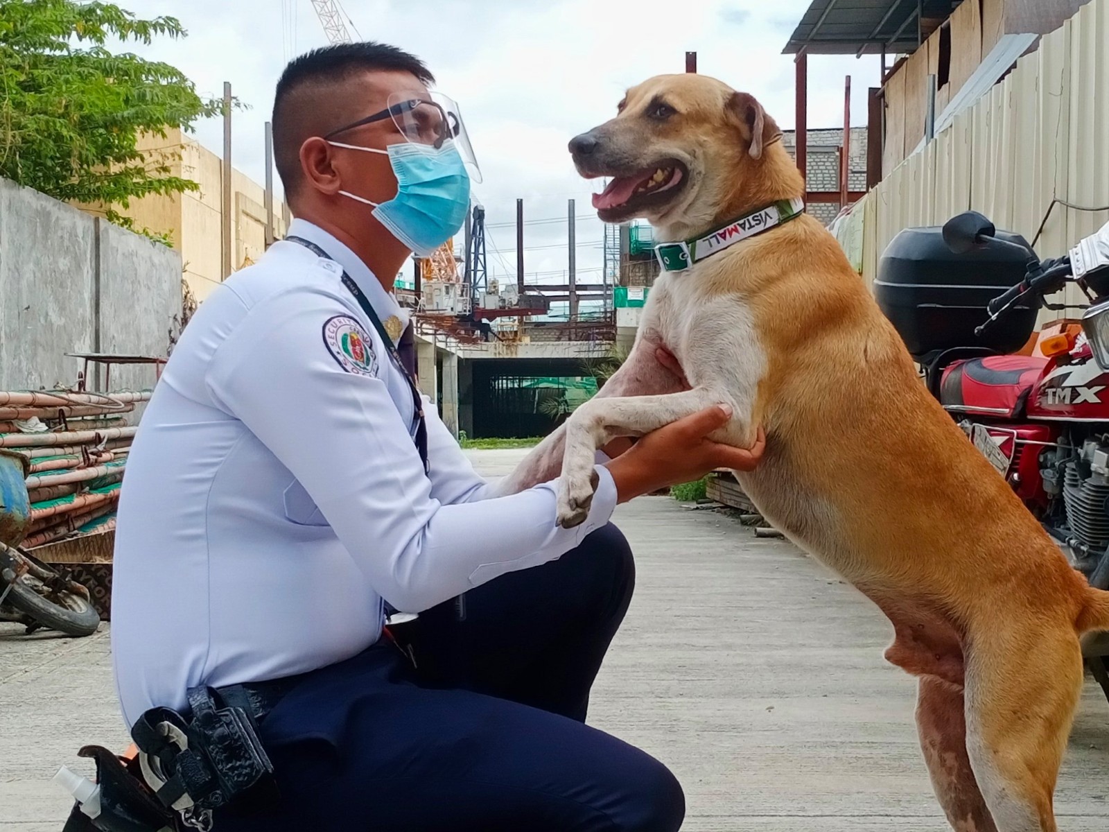 ▼保全和狗狗的溫馨互動: