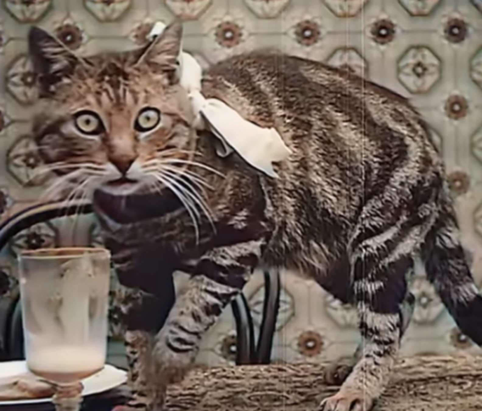 貓咪從來沒變過! 100年前「被遺忘的電影片段」 吃貨虎斑「跳上桌搶食」:奴才快上菜!