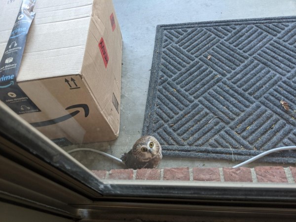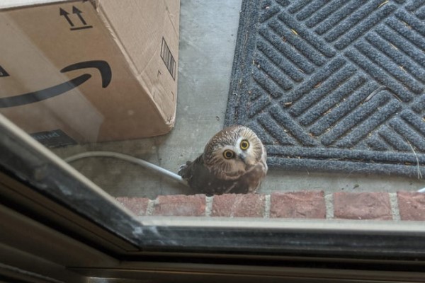▼這位送貨員是一隻北方棕櫚鬼鴞(Northern saw-whet owl),這是北美最小的貓頭鷹物種之一,通常生活在密集的灌木叢或針葉樹中,也愛住河邊的地區。這位網友能在自家門口看到牠,真的非常罕見。他想到《哈利波特》電影中貓頭鷹送貨的畫面,拍照po到網路論壇reddit上,開玩笑說:「這意味著我也是巫師了嗎?」