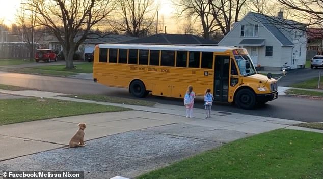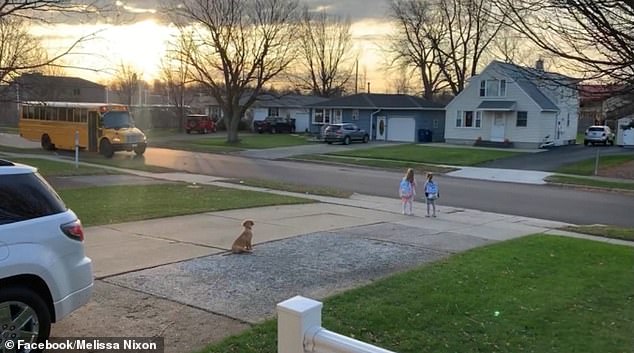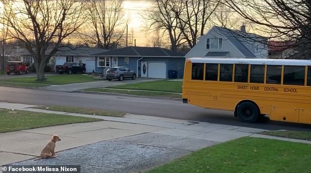 ▼Melissa介紹說:「Bentley是一隻非常活潑、調皮的狗狗,但牠真的很認真送孩子們去搭校車!」校車司機也注意到了Bentley,每天早上都會跟牠招呼。牠一臉嚴肅看著孩子們上車、坐好,等校車離開,牠才變回那隻調皮活潑的小狗。