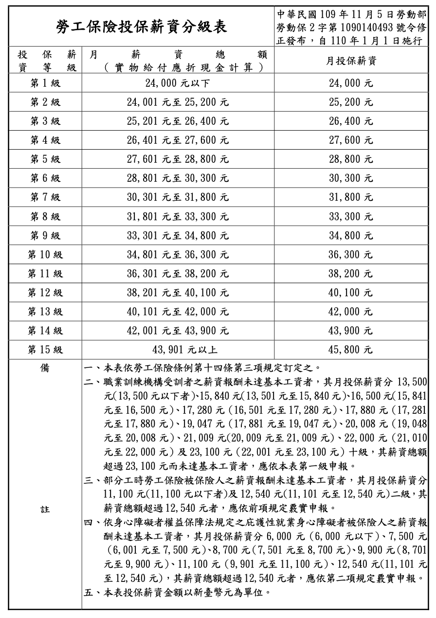 (圖片來源:勞動部勞工保險局/勞工保險投保薪資分級表)