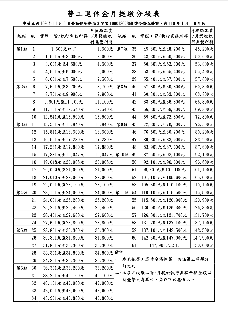 (圖片來源:勞動部勞工保險局/勞工退休金月提繳分級表)